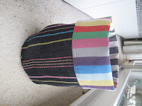 Le montage de ce vide-poche est pourtant simple: deux cylindres l'un dans l'autre cousus par le haut. La difficulté réside dans la couture de la base, un cercle, sur le bas du corps du vide-poche, un cylindre.